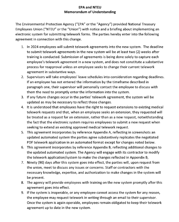 NTEU Telework Policy at EPA